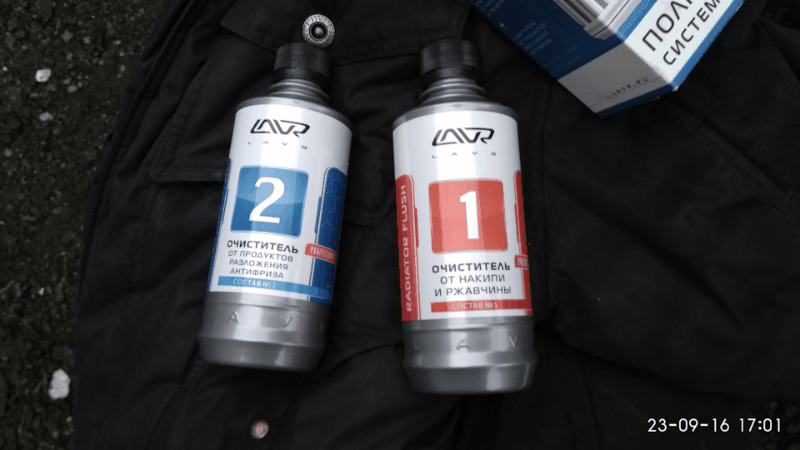 Слил то что было когда то антифризом… Промыл водой, затем водой с составом для промывки №1,