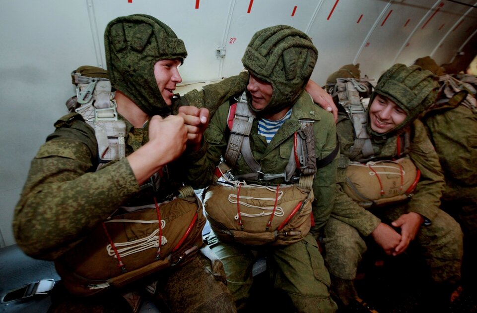 Самолёт. Два десантника. Один мрачный Второй спрашивает: - Чо такой грустный - Да понимаешь два раза здесь уже прыгал. Оба раза парашют не раскрылся Прыгает третий – не раскрывается В это время внизу проходит заседание правления колхоза Выступает председатель: - Урожаи хреновые - Надои хреновые Проламывается крыша, падает десантник - И десантник этот уже задолбал