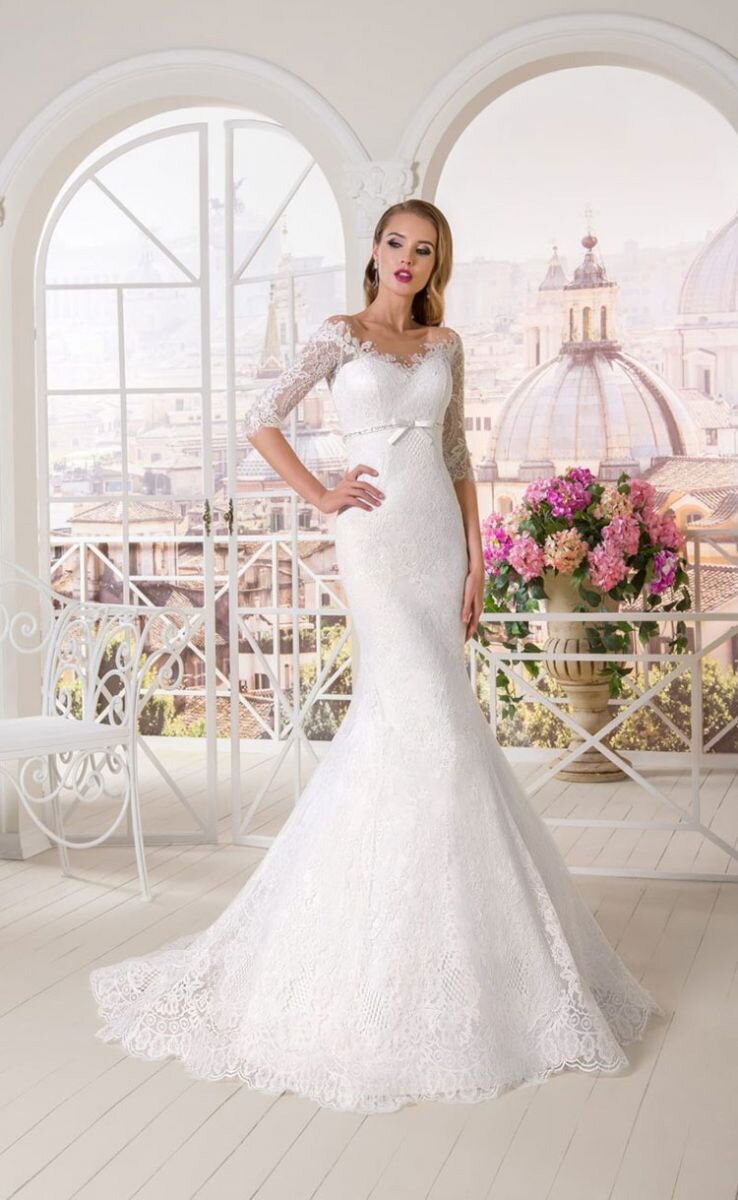 Если вы хотите как можно меньше следить за нарядом, выбирайте закрытые платья. Элегантный крой модели ERIDANA от LANESTA с укороченной спереди юбкой позволит обрести свободу движений, помня только о шлейфе.
