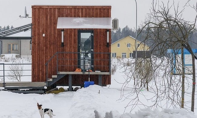 Белорусская семья из трех человек живет в доме площадью 16 квадратных метров. Здесь есть все необходимое: ванная, кухня, гостиная, спальня и даже балкон. Решение строить мини-дом пришло из соображений экономии.