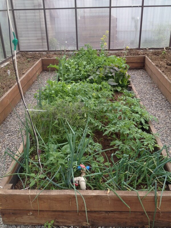 В 2016 году мы вырастили рассаду рано весной в теплице в грядке с электроподогревом. И после этого перестали выращивать её на окнах в доме. Из грядки мы еще осенью убрали грунт, на дно положили утеплитель, арматурную сетку и греющий кабель для теплого пола. В грядку насыпали органическую почвосмесь - землю с компостом, который был приготовлен с биопрепаратом "Сияние-3". В начале апреля прокопали дорожку к теплице. И посеяли семена в грунт в обогреваемой грядке, причем кабель включили за два дня до посева, чтобы земля прогрелась. Причем помимо рассады в грядке еще выращивали редис и зелень. На фото видно, что температура воздуха в теплице +10, а в грунте +18. Такой мощной рассады у нас никогда не было. На фото - растение слева для интереса выращивали дома на подоконнике (посев был одновременно), растение по середине росло с краю грядки, где температура почвы была ниже из-за охлаждения от бородюра, растение слева росло по центру грядки. Ну и вот результат - рассаду слева мы выра