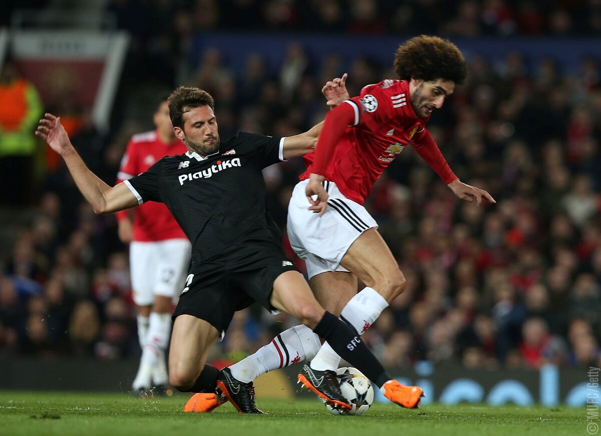 «Севилья» сейчас занимает пятое место в Ла Лиге и сильно уступает в гонке за титул, в которой доминирует «Барселона», но команда играет в очень качественный футбол, и «Олд Траффорд» быстро почувствовал, что игра предстоит непростой, и «Юнайтед» не мог не ответить. Первый шант побеспокоить гостей выпал Феллайни на 38-й минуте. Получив точно выверенный пас с левого фланга, бельгиец пробил по воротам, но Сергио Рико отбил мяч на угловой.