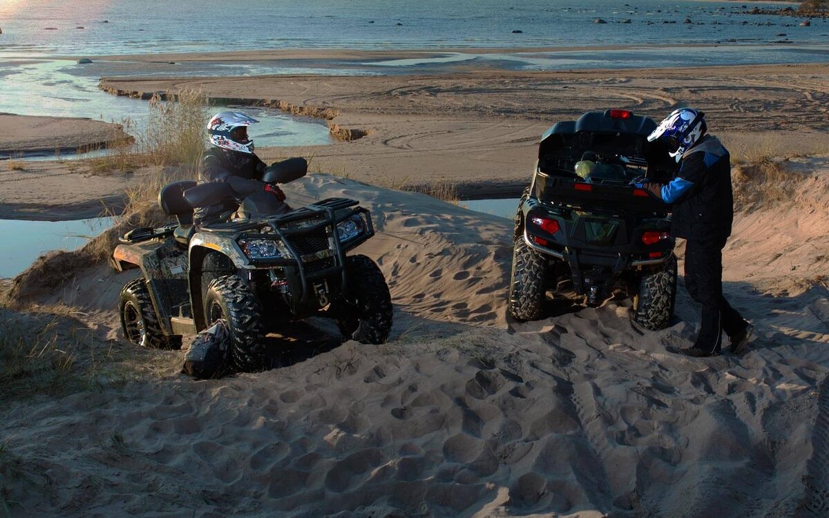 Мотор приятно урчит на холостых оборотах, но поддавая газа, ощущаешь, как сердце начинает громко стучать, чувствуется вся мощь 800 кубового двигателя, выдающего без малого 56 л.с.. Четырехколесник действительно приятно водить, а от динамики и силы закипает кровь. Выехав на размытую дорогу, разгоняю четырехколесник: он рычит, но проворно выскакивает из всех выбоин. Подвеска, хотя и жесткая, но не стучит — справляется с нагрузкой, а ведь мы вместе с квадроциклом весим 600 кг. с лишним. Впереди, перед лесом поваленное дерево — не беда, аккуратно поддав газа, с легкостью преодолеваю препятствие. Попробуем заехать одной стороной в колею – также порядок, квадроцикл даже не намекнул на потенциальную возможность перевернуться, это заслуга стабилизатора поперечной устойчивости. На очереди большая, грязная лужа, без страха пускаюсь в самую грязь, сначала кажется, что колеса увязли в грязи, но нет – промочив ноги выше колена, я и вездеход преодолеваем и грязевую ванну тоже. Такое ощущение, что этой машине все нипочем.