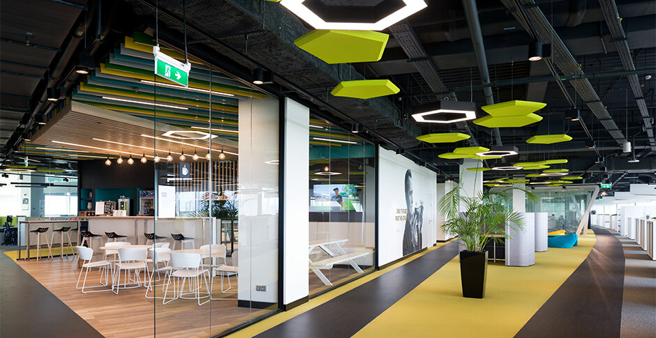 Офис adidas HOME OF SPORT находится в бизнес-парке «Крылатские холмы» в новом корпусе и занимает 20 000 кв. м. Из 6 этажей на 3-х располагаются офисы, 2 заняты фитнес-центром, на одном располагается уникальный проект - Академия Adidas. При этом офис для такой яркой компании, как adidas, должен быть запоминающимся, динамичным и должен побуждать сотрудников и гостей менять жизнь людей через спорт. Разрабатывая дизайн-концепцию, архитекторы ABD architects опирались на фирменный стиль adidas и на логотипы компаний, входящих в группу. Так возникли основные цвета и сочетания: черный с белым и яркие цветовые акценты. Три офисных этажа отличаются между собой по цветам: оранжевый, зеленый и синий. Это облегчает навигацию и создает свое уникальное настроение и атмосферу на каждом этаже. Логотип adidas были переосмыслен архитекторами в интерьере. На каждом этаже в одних и тех же местах расположены белые капсульные переговорные, которые, если смотреть из атриума, с торцов напоминают три класси