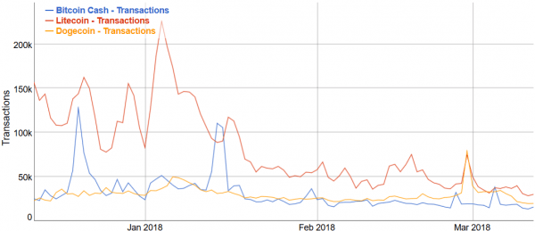 Однако открытые данные статистики криптовалют показывают, что за последние два месяца число транзакций с Bitcoin Cash лишь изредка превышало количество транзакций с Dogecoin. При этом обе валюты до сих пор не могут конкурировать с Litecoin. фото: 123RF Ис