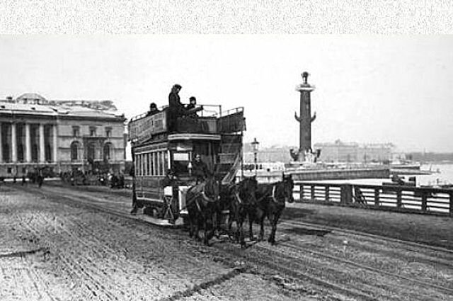 В одна тысяча девятьсот шестьдесят втором году появляется «Акционерное общество конно-железных дорог». Оно должно было создать три маршрута для нового городского транспорта – конок. Запуск первого вагона на конной тяге состоялся двадцать седьмого августа одна тысяча восемьсот шестьдесят третьего года по Невскому. В дальнейшем, конки начали ходить от Гостиного двора до Никольского рынка и от Дворцовой площади до шестой линии Васильевского острова.