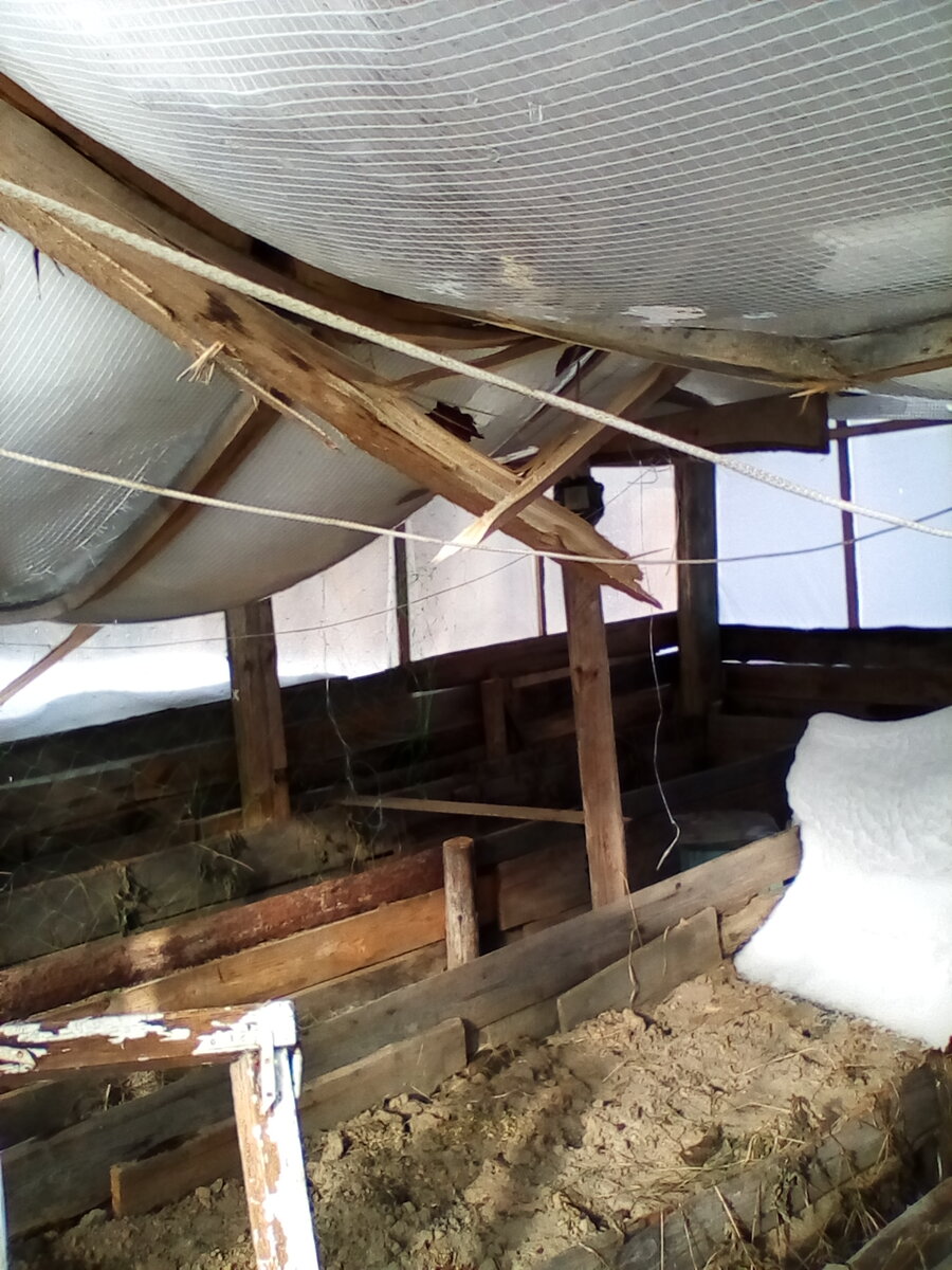 Солнышко светит всё ярче, в воздухе пахнет весной. Так как в апреле я собралась сажать редиску в теплицу, то пора этой самой теплицей заняться. Мы же сделали большую глупость - не сняли плёнку на зиму. Пошли с мужем к теплице, ну, думаю, лохмотья висят, порвалась. Щааааас! Плёнка-то армированная. Выдержала огромный пласт снега со льдом! В отличие от досок, которые не выдержали. Снеговая масса держалась на плёнке и тянула на себя бока теплицы, грозя сложить её, как карточный домик. Сначала откопали дверь. Открыли. Страшно. Начали потихоньку рвать плёнку. С внешней стороны скидывать снег с крыши было бессмысленно - доски уже проломились. И после множества ударов лопатой плёнка поддалась и лопнула, после чего с грохотом обрушилась половина крыши теплицы. Стены устояли. Вторую часть откапывали по кусочку. Во-первых, там проводка. Мой любящий папа обеспечил меня лампочками и выключателем, чтобы копаться в земле хоть ночью. Во-вторых, хотелось сохранить ту половину крыши, на которой доски н