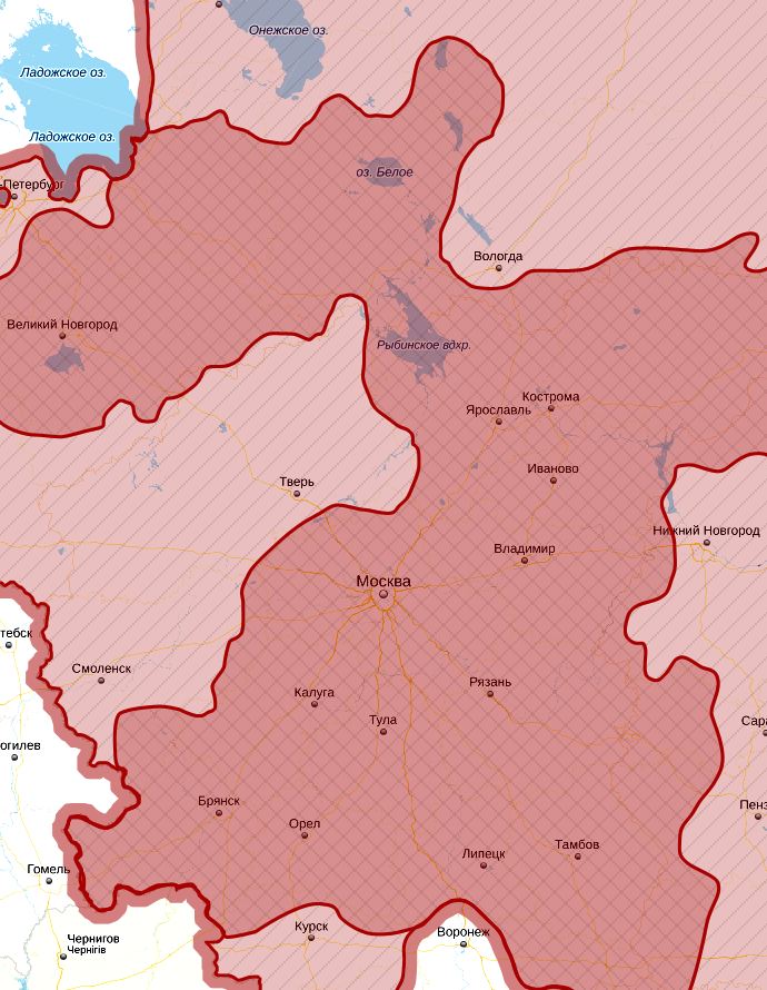 Города в ареале изначального проживания великороссов