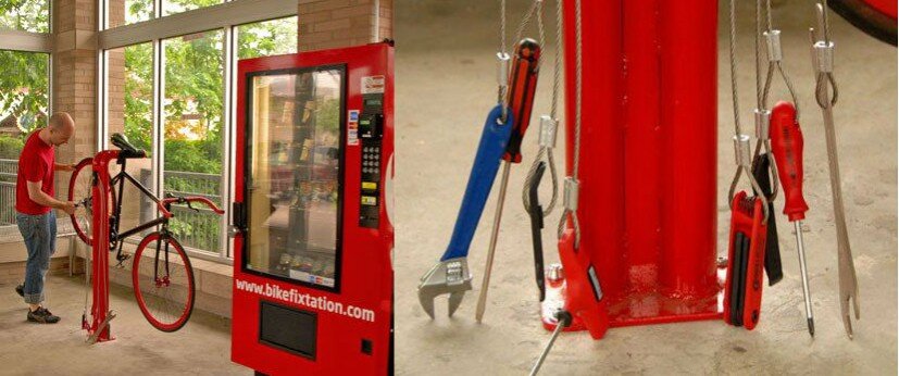 Бесплатная станция починки велосипедов Прекрасное изобретение придумали в Миннеаполисе – станции для бесплатного ремонта велосипеда. В нашей стране долгое существование такого изобретения можно было предположить только в советские времена. Те, кто помнит автоматы с газированной водой и лимонадом, помнят и сознательных алкашей, которые попользовавшись стаканом, всегда мыли его и возвращали обратно. Но, увы, времена бережного и честного отношения ко всему бесплатному и сделанному для людей канули в лету вместе с Советским Союзом. Остаётся завидовать более интеллигентным соседям, которые создали в наше время бесплатные станции ремонта велосипеда. Идея пришла в голову велолюбителям и энтузиастам. Были опрошены все те, кто предпочитает передвигаться на двух колёсах и периодически нуждается в экстренной починке или срочном мелком ремонте своего транспорта. Так появились станции самостоятельной починки Bike Fixtation. Это просто удивительно, вам не нужно покупать отвертку или детальку для