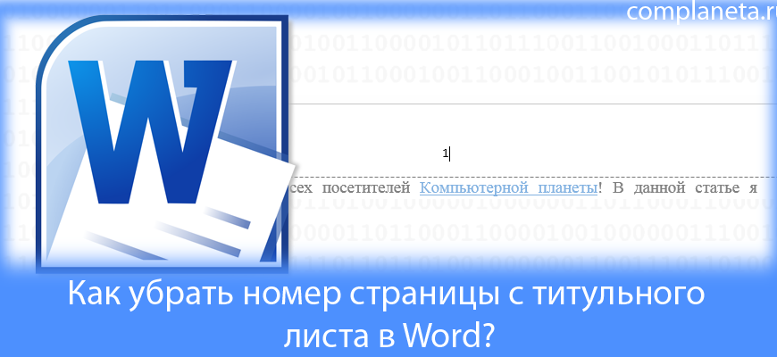 Приветствую всех посетителей Компьютерной планеты! В данной статье я расскажу об одной небольшой хитрости. Вы узнаете, как в Microsoft Word убрать нумерацию с титульной страницы и при этом сохранить нумерацию на всех остальных страницах документа.