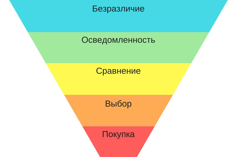 Обычно человек проходит пять этапов на пути к покупке. Маркетолог Бен Хант назвал эти этапы «лестницей узнаваемости», а каждый этап — ступенью.