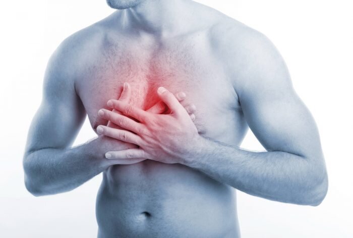 Диагностика заболеваний, вызывающих болевые ощущения у мужчин, начинается с локализации болевого источника. Боль в левой половине груди всегда вызывает большие опасения, так как может являться причиной заболеваний сердца, которые достаточно быстро прогрессируют и приводят к летальному исходу. В частности инфаркт миокарда вызывает внутреннее жжение, которое может распространяться на всю грудь, а также отдавать в область шейного отдела и левой руки. Устранить болевой симптом при подобном заболевании можно только сильными анальгетиками с наркотическим эффектом.