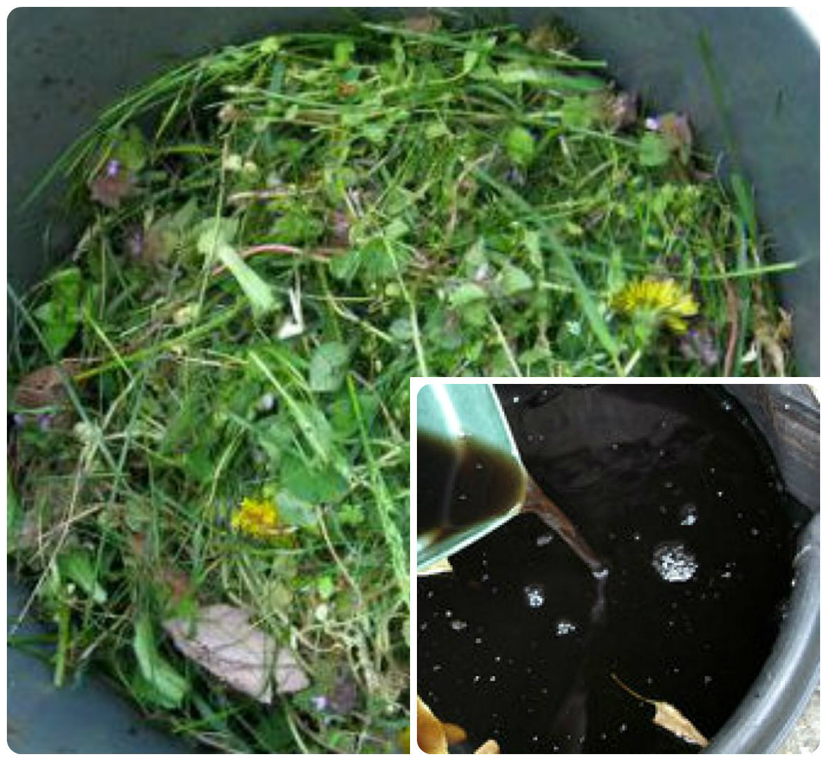Помимо зеленого удобрения с большим содержанием азота и калия, можно приготовить и удобрение с высоким содержанием фосфора, калия и микроэлементов. Такое удобрение активизирует цветение и плодоношение, улучшает качество и лежкость плодов. Я уже писала, как традиционно готовят зеленое удобрение в бочке. Но можно облегчить себе процесс использования удобрения, убрав из перечня работ процеживание и выливание осадка. Для этого соберите сорные травы в мешок из рогожи натуральной или синтетической, добавьте лопату птичьего помета или навоза, завяжите и опустите в пластиковую 200-литровую бочку. Для удобства веревки-завязки снабдите грузиками и оставьте свободными вне бочки. Залейте теплой водой не до самого верха, затяните полиэтиленовой пленкой и обвяжите бечевкой. В пленке сделайте несколько проколов шилом. Раз в два дня снимайте «крышку» и хорошенько трясите мешок за веревочки, чтобы из него активнее выделялся настой в воду. Через одну-две недели экстракт представляет собой жидкость тё