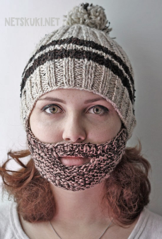 Наверняка вы не раз видели в интернете рекламу «бородатых» шапок Рукодельницы могли встречать подобные фото на специализированных сайтах или ресурсах типа Pinterest. Бороды забавно смотрятся, поднимают настроение и в холодные зимы могут уберечь лицо от сильных морозов. Вопрос в том, где взять такой интересный «аксессуар»? Можно найти интернет-магазин и заказать готовый комплект. Можно заказать изготовление какой-нибудь рукодельнице. Но если вы немного умеете держать в руках крючок или спицы, то куда проще, дешевле, быстрее и интереснее связать бороду своими руками. В интернете много мастер-классов и рекомендаций по вязанию бороды крючком, поэтому мы не будем повторяться, а поделимся нашими наработками по изготовлению модной штуки спицами. На наш взгляд, результат получается куда приятнее, поскольку такое полотно куда эластичнее и мягче, оно органично облегает подбородок и щеки, хорошо держится и защищает от морозов. Итак, приступаем к изготовлению бороды. Спицы должны быть не очень