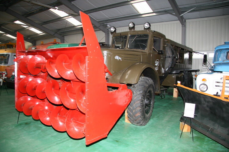 Всех полноприводных капотных МАЗов для армии было построено не очень много, а уж специальных и того меньше. Даже с окончания их выпуска прошло больше полувека, и обычных сохранилось меньше десятка, а такой - и вовсе единственный. 01. Разработанный на базе бортового МАЗ-200, его полноприводной собрат 502 военным понравился не очень. Машина получилась тяжелой (11700 кг), не очень эффективной (грузоподъемность - 4 тонны), да и проходимость, невзирая на полный привод и большие колеса (15,00-20"), оставляла желать лучшего. 02. А вот мощный шнекороторный снегоуборщик Д-450 понравился армии гораздо больше. Его разработали на минском заводе "Ударник" для очистки взлётно-посадочных полос и рулёжек аэродромов стратегической авиации. Д-450 отличался от аналогов наличием трёх шнеков и двухмоторной схемой привода: для обеспечения работы снегоочистительного оборудования на месте кузова устанавливался второй дизельный двигатель 2Д12Б мощностью 300 л.с. Его характеристики, по тем временам, впечатлял
