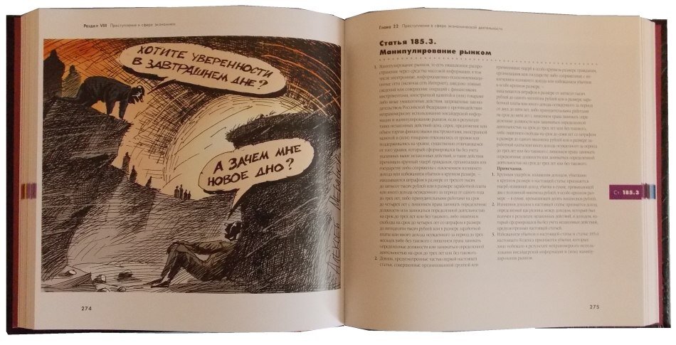 Очень крутые книги: золотые, редкие, необычной геометрии, смотрите и удивляйтесь! В нашем книжном интернет магазине "Подарочные книги. Ру" более 2500 подарочных книг, которые вы можете купить в подарок любому человеку, разных тематик и жанров, размеров и цветов. Мы решили подобрать для вас самые необычные и уникальные подарочные книги России. Это подарочные издания, на которые стоит обратить свое внимание совершенно по разным причинам, которые мы перечислим ниже. 1. Иллюстрированный уголовный кодекс РФ Первый раз такой кодекс (в черно-белом исполнении) выходил в 1997 году, второй - в 2003-м. Оба издания были мгновенно распроданы, а к настоящему дню стали библиографической редкостью, и до сих пор их - даже устаревшие! - разыскивают любители творчества художника и коллекционеры необычных книг. Для кого это? Для тех, кто сам хотел бы изучить законы без скуки, запоминая яркие образы. Для тех, кто ищет подарок юристу или сотруднику полиции. Для поклонников творчества Алексея Меринова.