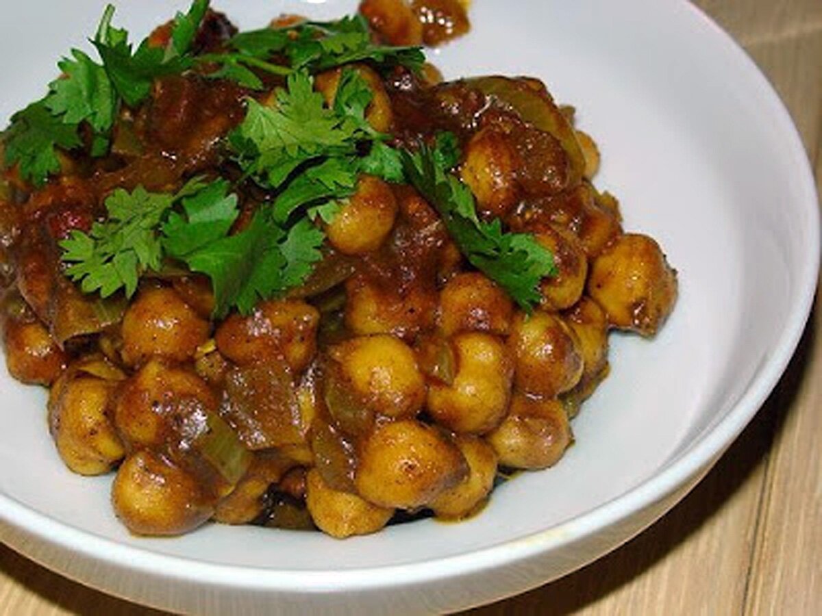 Ингредиенты: белый нут, имбирная и чесночная паста, имбирь, лук, листья пажитника, чана масала, гарам масала целая, куркума, масло ги, вода, сода, асафетида, зеленый чили, кумин, кориандр, соль, лимон, кинза Рецепт: Рецепт северо-индийской кухни. Время приготовления : 25 минут