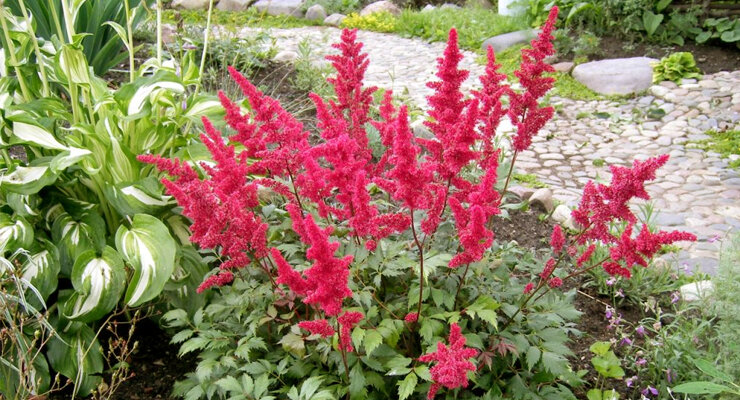 Кустики астильбы довольно неприхотливы, холодоустойчивы, на одном месте без пересадки могут расти, не теряя декоративности, более 5-7 лет. Среднерослые (высотой до 60-70 см) сорта с розовыми или пурпурно-лиловыми цветками, украшают сады в начале и середине лета. А если чуть «перехитрить» природу, можно заставить растения цвести уже с конца мая. Секрет раннего цветения Для этого периодически ранней весной свои астильбы делите, не позволяя им «стариться». Когда сходит снег и начинает подсыхать почва, на слегка выпирающих корневищах хорошо заметны почки возобновления. Выкапывайте и тщательно осматрите корневой ком, если есть отмершие участки, удалите. Делите руками (пока куст молодой, сделать это не сложно) на 2-3 части. Правила посадки ❀ Новое место под посадку готовлю в полутени, по краю миксборде-ра. Делаю неглубокие лунки диаметром около 30 см. Расстояние между ними — 30-35 см. ❀ На дно каждой сыплю немного песка и кладу два-три шарика гидрогеля: они при поливах набухают и затем отлич