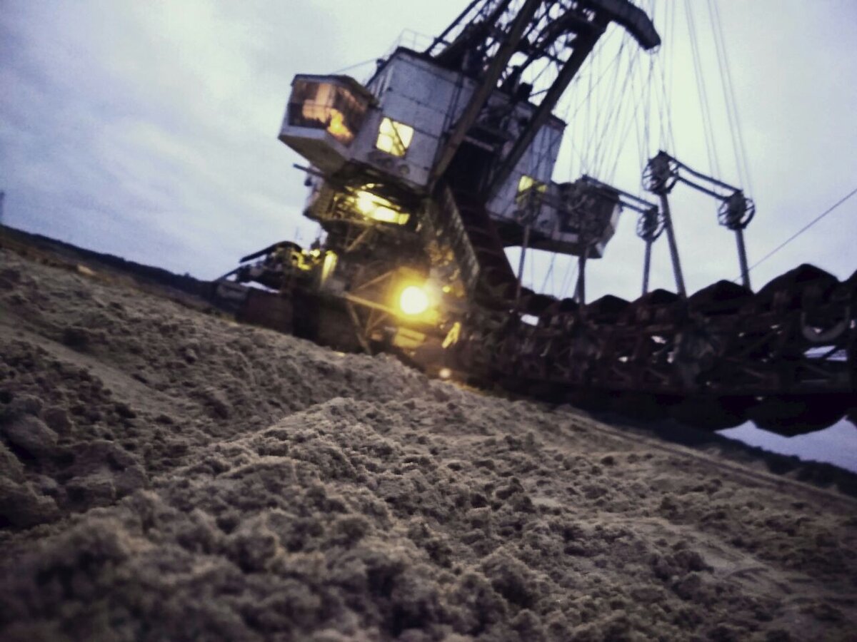 А вот и сам карьер. Огромный ковш шагающего экскаватора размером с дом.