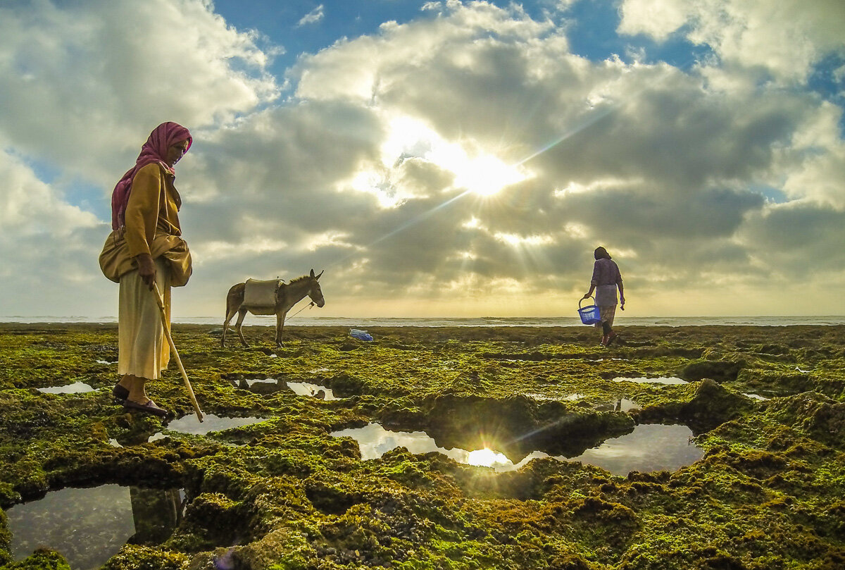 Честно говоря, я бывает сама ныряю и ловлю ежей. Морских, конечно же. Водятся они много где: Япония, Азия, Африка...Сегодняшний наш репортаж из Марокко, снят в отдаленной от туристов деревне на берегу Атлантического океана. Местные жители собирают ежей на рифе в отлив. На осликах приезжают преимущественно пожилые женщины и дети\подростки Ослик, кстати, незаменимый помощник в хозяйстве марокканцев. Ми-ми-ми:) Бабульки орудуют просто заправски. Делают это всю жизнь. С детства . Зачем они ловят ежей? Их едят. Едят ежей не только в Марокко, но и везде где они есть.... Просто на берегу или в дорогущих Мишленовских ресторанах. Многие (особенно японцы) уверены, именно они- путь к практически бессмертию.