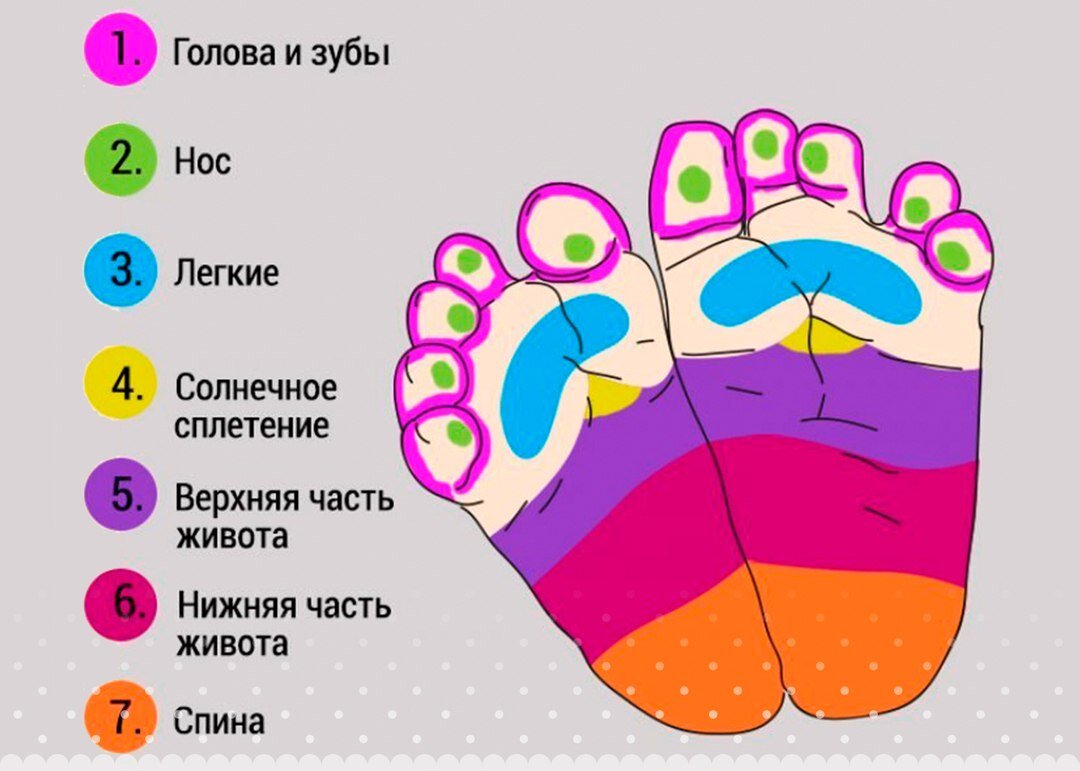 Вам когда-нибудь делали массаж стоп? Согласитесь, это приятно. Малыш чувствует то же самое! Если правильно помассировать маленькие ножки, можно легко успокоить ребенка. Ниже несколько слов о массаже каждой из представленных на рисунке областей: