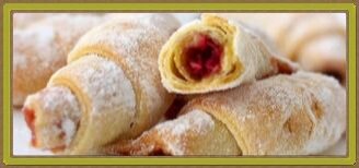 Порой очень хочется каких-нибудь лакомств из слоённого теста. Но одна мысль о том, насколько трудоёмкий процесс приготовления слоённого теста, отбивает всякое желание. Этот рецепт просто НАХОДКА! Необходимые продукты. Мука Яйцо- 1 шт. Подсолнечное масло- 2 стол.ложки Уксус 9%- 2 стол.ложки Вишня в собственном соку. Процесс приготовления теста. В стакан ёмкостью 200 грамм разбиваем одно яйцо, добавляем 2 столовые ложки подсолнечного масла, 2 столовые ложки уксуса. Хорошо пермешиваем и доливаем воды, чтобы стакан был полным. Выливаем этот состав в миску и, добавляя постепенно муку, замешиваем мягкое тесто. Мягче, чем на вареники. Заворачиваем тесто в пищевую плёнку и даём ему отдохнуть 20 минут. Тесто ещё раз хорошо перемесить. Тесто отлежалось ещё 5 минут. Раскатываем его в круглый корж толщиной в 5 мм. Разрезаем на сектора. Если любите маленькие рогалики, то разрежьте на 16 секторов. Любите большие, разрежьте корж на 8 секторов. На основание каждого сектора выкладываем вишню (вишня