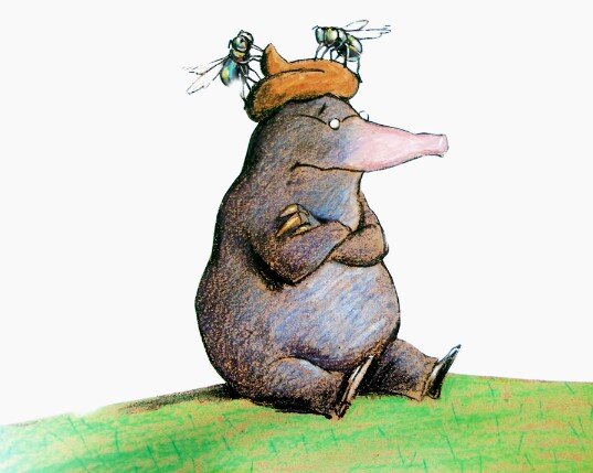 В сказке рассказывается о маленьком кроте, который выглядывает из норки и этот момент ему на голову падает «что-то продолговатое и коричневое, немного похожее на колбаску». Животное, возмущенное такой наглостью, с какашкой на голове отправляется на поиски «преступника».