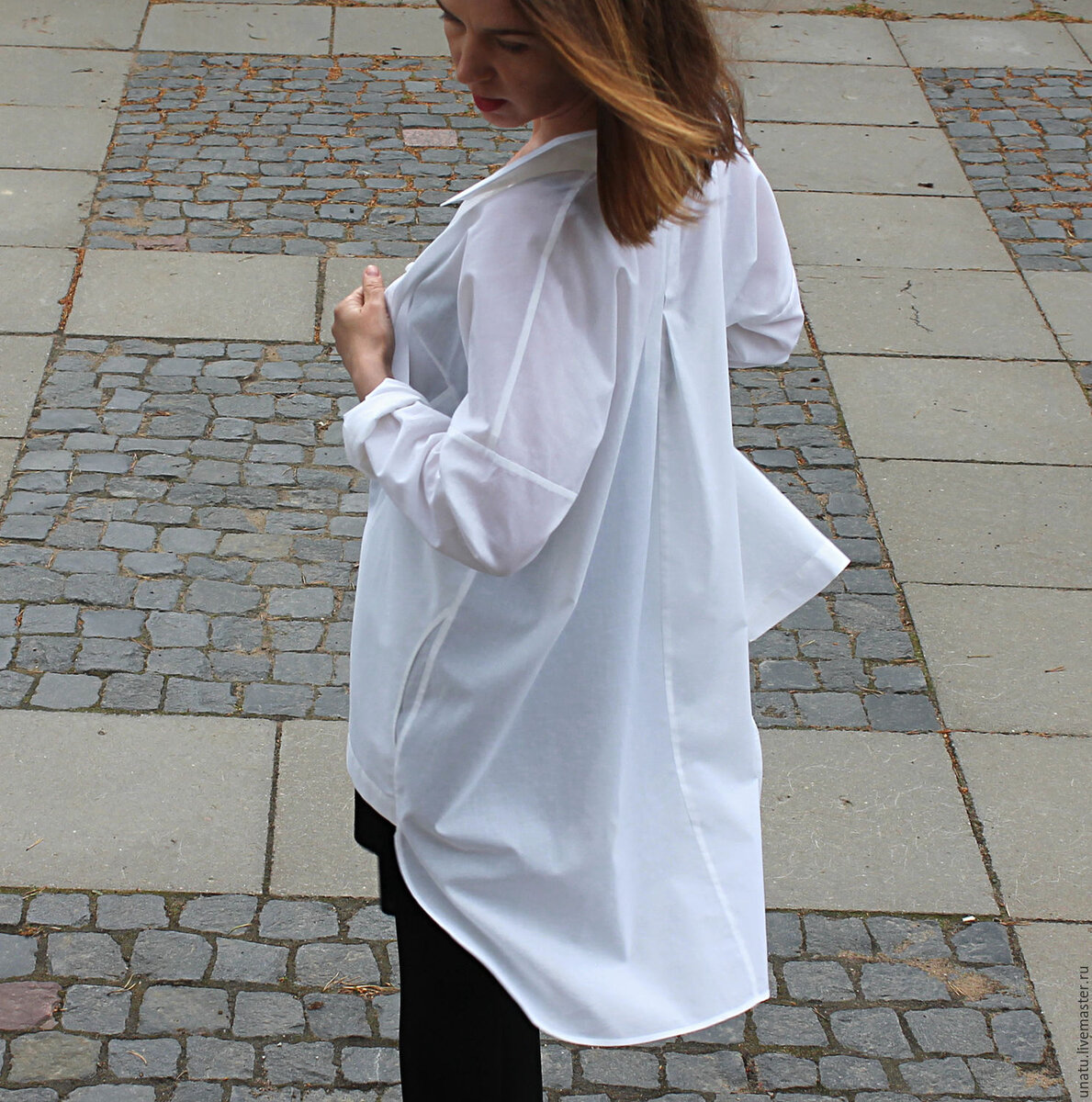1. Белая рубашка, повторяющая силуэт мужской У правильно выбранной рубашки узкая горловина и длина с запасом, чтобы рубашка аккуратно выглядела в заправленном виде. Рубашка должна подходить вашему цветотипу и не должна быть белее цвета зубной эмали.