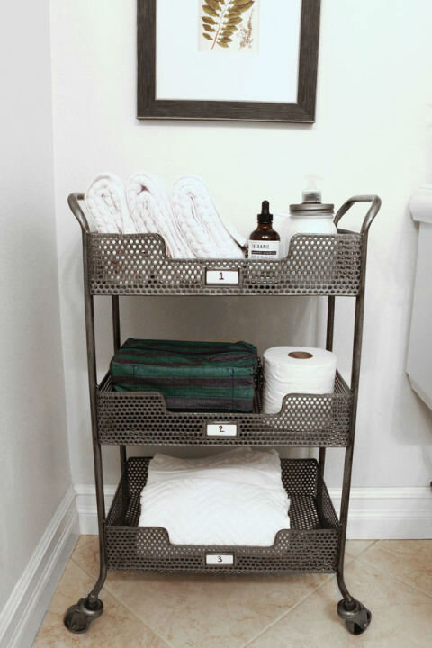 Приятно после трудного дня принять ванну, и вдвойне приятнее это делать в комфортной обстановке. Мы вам предлагаем 12 маленьких трюков, которые сделают ванную в 2 раза комфортнее. 1.Поставьте тележку. На тележке вы можете хранить полотенца, соль для ванны и прочее. С тележкой уборка станет проще в разы, а ванная опрятнее. 2. Именные крючки для полотенец Мало того, что это трогательно, так еще и снимает вопрос утренних драк, кто чье взял. 3. Используйте стены с умом 4. Подарите вторую жизнь вещам, которыми вы не пользуетесь. 5. Используйте вращающиеся подставки 5. Используйте магнитные доски 6. Сделайте органайзеры 7. Используйте банки для хранения вещей 8. Используйте боковые поверхности 9. Многоярусные корзины 10 Магнитные ленты