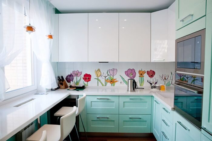 1. Современный стиль Классические стили дороже в реализации и любят большие площади. К тому же на кухне много бытовой техники, а она почти вся имеет современный дизайн. Чтобы выдержать классику и по технике придётся сильно сузить диапазон выбора и поднять бюджет. 2. Не больше 2-ух цветов Один основной и один акцентный. Причем фасады кухни должны быть спокойного цвета. Дело в том, что на любой кухне есть обязательный набор предметов для готовки. И на маленькой площади концентрация этих предметов очень высока. А они тоже имеют свои цвета. Представляя дизайн будущей кухни, всегда представляйте её реально эксплуатируемой со всем техникой, посудой, полотенцами и т.д. 3. Отказ от аксессуаров По той же причине никаких безделушек только для красоты. Для стильного дизайна кухни они не нужны. Только необходимые функциональные предметы. 4. Верхние шкафы до потолка Даже если не достаёте. Всегда есть что-то редко используемое, что можно туда определить. Отсутствие места на шкафах сверху не