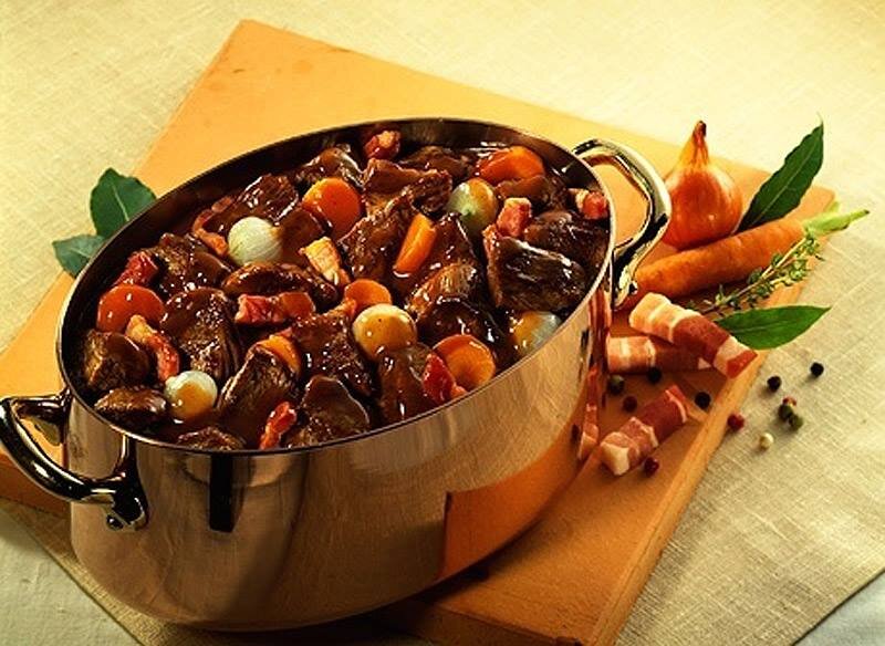 Как и большинство мясных и рыбных блюд во Франции, наша говядина будет мариноваться в винном соусе с корнеплодами и множеством разнообразной зелени. Именно благодаря этому наше мясо приобретет особенный вкус и бесподобный аромат. Затем промаринованное мясо будет томиться на маленьком огне и станет очень нежным и сочным. Это блюдо сведет с ума даже самого изысканного гурмана. В приготовлении соуса используется красное вино, но пусть это вас не пугает, в процессе тушения алкоголь выветриться и останется только небольшой терпкий привкус винограда. Именно он придает мясу особенный шарм. Необходимые продукты Для соуса Начинаем приготовление Подавать такое мясо мы рекомендуем с картофельным пюре от шеф-повара. Рецепт его приготовления смотрите по ссылке.