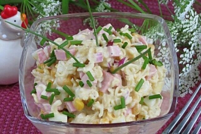 Очень простой и быстрый в приготовлении салат с мивиной и колбасой