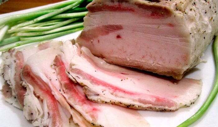 Представляем вам рецепт приготовления самого вкусного сала. Благодаря рассолу оно получается нежным, мягким и очень аппетитным. А специи придают ему особенный вкус и аромат. Благодаря горячему маринаду, сало будет готово уже через 4 дня. Мы рекомендуем подавать такое сало к вкусному осеннему борщу, приготовленному по рецепту с сайта «Идеи рецептов». Необходимые продукты Для рассола Начинаем приготовление