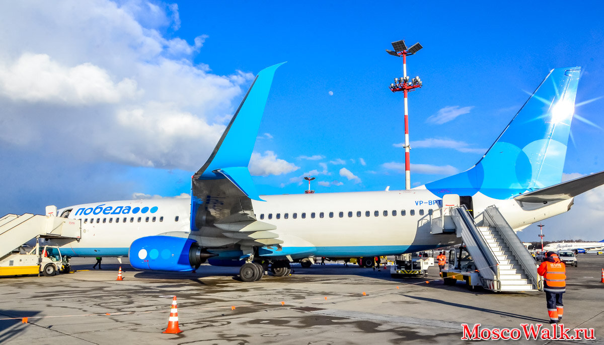 Обслуживание самолёта авиакомпании «Победа» в аэропорту Внуково