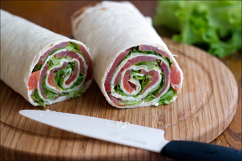 Ингредиенты: - лавашный лист 1/2 - Семга с/с 180г - Сыр домашний Филадельфия (или творожный) 100г - Зелень (укроп) 20г. - Перец. Лавашный лист смазали сыром. Поперчили. Посыпали зеленью. Разложили нарезанную семгу в шахматном порядке . Свернули рулет и готово. Для сочности можно добавить авокадо или огурец. Приятного вам аппетита! КБЖУ: 167/13.2/7.1/12.2