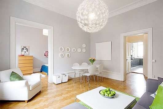Освободите центр комнаты, постарайтесь загромождать помещение минимально. Вы сразу заметите, что она стала светлее и легче: если в центре комнаты находится мебель, она будет поглощать свет, а вот правильная расстановка сгладит этот недостаток. Насчет мебели: она не должна слишком уж явно контрастировать со стенами и потолком, откажитесь от громоздкой и массивной мебели. Очень хорошим выбором станут предметы интерьера на блестящих ножках – они кажутся утонченнее и элегантнее.