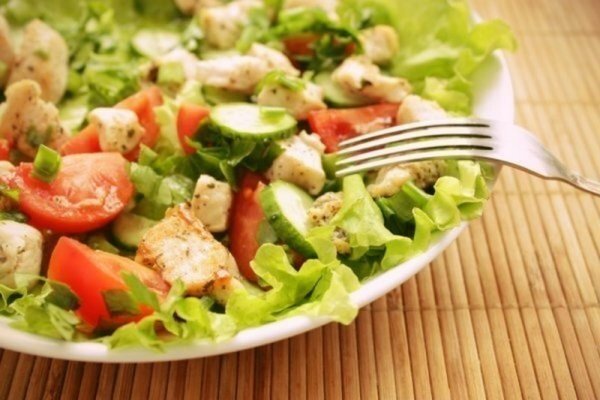 Блюдо сытное и, в то же время, легкое, его можно приготовить на ужин. ИНГРЕДИЕНТЫ: ПРИГОТОВЛЕНИЕ: СОВЕТ В салат также можно добавить полоски или кусочки сладкого болгарского перца.