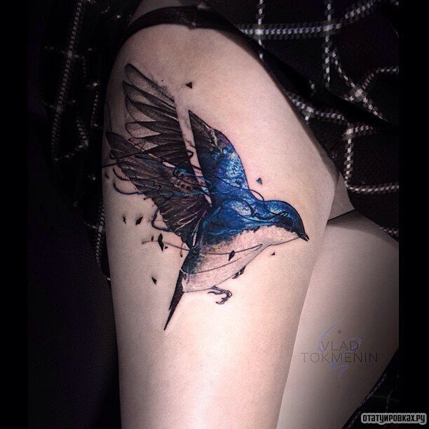 Татуировки птиц – нежность, парящая в облаках Татуировки с изображением животных довольно популярный мотив. Встречаются они как среди женщин, так и мужчин. Однако, нужно отметить, что и тату птицы того или иного вида пернатых встречается не так уж и редко. Многие решаются на подобные рисунки под мимолетным порывом души, другие – осознанно приходят в салон. Как при этом выбрать рисунок, что не будет повторяться с другими, ведь множественные эскизы из интернета давно стали заезженной пластинкой? Об этом – ниже! Тату птицы: настоящий полет фантазии Татуировки на тему птиц разнообразны, причем начинаются они с лишь намека на птицу, ее схематического изображения, и заканчиваются яркими и красочными художественными картинами. Никто не допустит ошибку, разделив тату птиц на две большие категории: Естественно, они будут перекликаться, но такое деление позволит понять, какую птицу следует нанести тому или иному человеку. Женщины отдают предпочтение нанесению небольших по размеру взлетающих пт