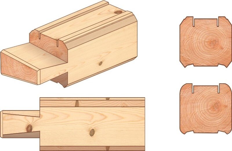 Тирольский замок в брусе сочетается с пазогребневым профилем, который обеспечивает герметичность сруба по всей высоте. К таким относятся немецкие и финские типы бруса.