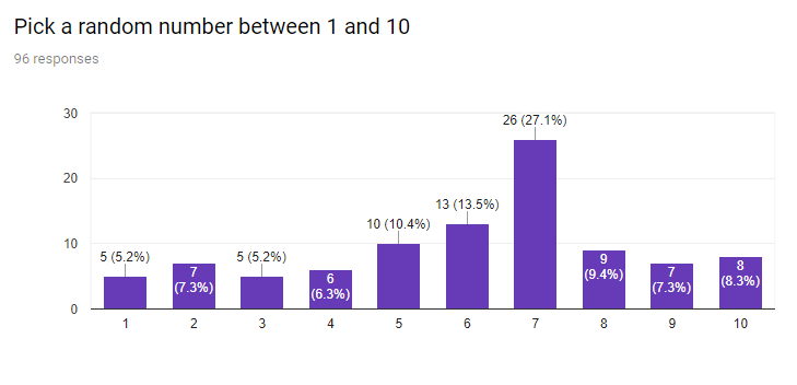 Людей попросили назвать любимое число от 1 до 10. И вот результат.