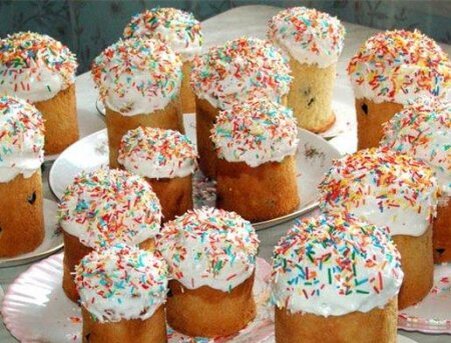 На Пасху у нас собирается большая семья и каждый печет булки. Я уже рассказывала про свой фирменный нежный куличик (всего-то на пол кило муки). Но иногда булок нужно испечь много, тогда в ход идет проверенный рецепт на большую компанию. С удовольствием делюсь с вами еще одним семейным преданием))). Набор необходимых продуктов: 750 мл молока, 75 гр. дрожжей, 6 яиц, 200 гр.сливочного масла, 150 гр.сметаны, 50 гр.подсолнечного масла, 3 щепотки соли, ванилин, 750 гр.сахара и 3 килограмма муки. Растираем дрожжи с 2 ложками сахара и оставляем на 20-30 минут (они "расплывутся"). Подогреваем молоко и вливаем туда дрожжи, добавляем 3 щепотки соли и просеянную муку (не всю, а до консистенции густой сметаны). Ставим в теплое место от одного до трех часов. Далее кладем сметану, яйца, взбитые с сахаром в пену, ванилин и муку (не всю, где то 2-2,5 кг). Тесто становится более густым. Ставим его в теплое место. Смотрим по тесту - как поднимется, обминаем и добавляем оставшуюся муку. Месить такое тес