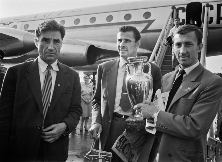 Первый Кубок Европы был разыгран в 1960 году во Франции. Надо сказать, что в связи с загруженностью многих игроков в национальных чемпионатах, многие европейские сборные отказались от участия в этом турнире - это были сборные Англии, Бельгии, ФРГ, Италии, Голландии, Швеции, а Испания отказалась играть четвертьфинал со сборной СССР по политическим мотивам. В финальном турнире в 1960 году участвовали 4 команды - это сборные СССР, Югославии, Чехословакии и Франции. Сборная СССР попала на финальный турнир, обыграв в 1/8 финала сборную Венгрии 3:1 и 1:0, и пройдя четвертьфинал без игр в связи с отказом сборной Испании играть в СССР.