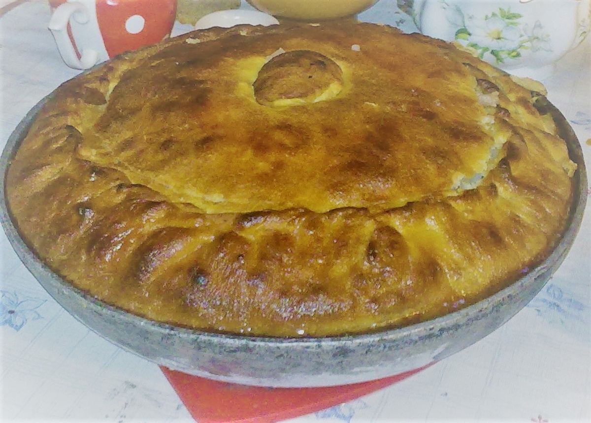 Без этого пирога не обходится, наверное, ни один праздник у татар. Татарская выпечка сама по себе очень вкусная. Чтобы понять, что такое татарские пироги, нужно один раз попробовать их. И тогда они точно будут частым гостем на вашем столе. Нам понадобится: Для теста: 1. Мука пшеничная 600 гр 2. Сметана 150 гр 3. Кефир 150 гр 4. Куриное яйцо 1 шт 5. Масло сливочное 150 гр 6. Растительное масло 1 ст.л 7. пищевая сода 1 ч.л 8. Уксус 9% 1/2 ч.л 9. Соль пищевая Начинка: 1. Картофель 1,7 кг 2. Телятина 2 кг 3. Лук репчатый 1 крупная луковица 4. Перец и соль по вкусу 5. Говяжий бульон или вода 200 мл Для начала готовим тесто для бэлеш. Берем посуду и смешиваем там сметану, кефир, яйцо, предварительно растопленное сливочное масло, растительное масло и щепотку соли. Гасим уксус и добавляем в смесь. затем добавляем просеянную муку, и вымешиваем тесто. Накрываем тесто полотенцем, и даем отдохнуть. А пока займемся начинкой. Картофель и мясо нарезаем не крупными кубиками(примерно 1,5 см). Изме