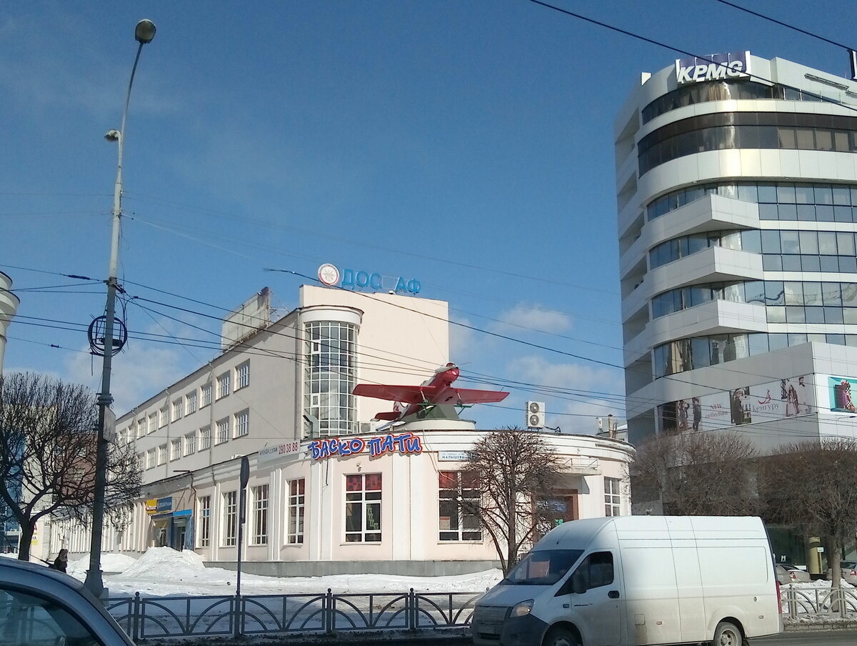 В 1924 году уральский город Екатеринбург был переименован в Свердловск, в память об умершем незадолго до этого соратнике Ленина Якове Свердлове. Отказ от "наследия прошлого" продолжился и позже. В 1930 году в городе была разрушена церковь Великомученика Максимилиана, более известная как Большой Златоуст. На месте церкви построили Дом Обороны для местного отделения ОСОАВИАХИМ - Общества содействия обороне, авиационному и химическому строительству. Задачей общества была подготовка из подрастающей молодёжи водителей, лётчиков, моряков и других востребованных армией и народным хозяйством специалистов. Сейчас в этом здании находится наследник ОСОАВИАХИМА - ДОСААФ. На крыше здания установили самолёт У-1 - первый биплан советской разработки, предшественник широко известного У-2 (По-2). Самолёты У-1 как раз списывали с лётной работы в середине 1930 годов, когда был построен Дом Обороны. А сорок лет назад это место занял более современный спортивный Як-50. В 2006 году рядом с Домом Обороны