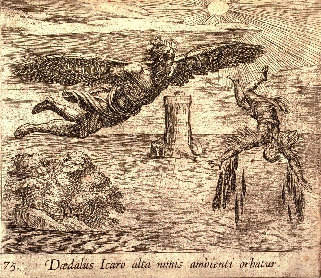 Миф повествует об афинском архитекторе, скульпторе и изобретателе по имени Дедал и его сыне Икаре. Они стали показательным воплощением предупреждения для всех мечтателей, пытающихся вырваться за границы земного. Как гласит предание, изобретатель способствовал смерти человека-быка, Минотавра, жертвой которого стали многие невинные девушки и юноши, и за это был сослан в темницу вместе со своим сыном. Дедал не мог вынести заточения и решился на побег, соорудив две пары крыльев, сотканных из перьев и скрепленных воском. Перед тем, как взмыть навстречу свободе, изобретатель предупредил Икара о том, чтобы он не спускался слишком низко к манящему синему зеркалу и не поднимался к палящему огненному шару. Но Икар, опьяненный игрой с ветром, не послушал отца. Жар дневного светила предрешил его судьбу – бездна уже распахнула объятия, принимая тело юноши. На первый взгляд, кажется, что история была соткана людской молвой для показания последствий непослушания. Но так ли это?