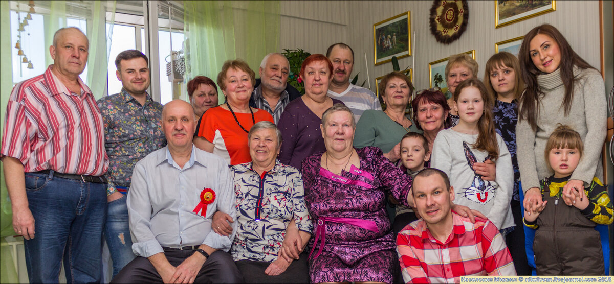 Сибирское гостеприимство. Начнём с родни юбиляра. Баба Лида. Папина тётка. Жена родного брата папиной мамы. Тётя Надя. Старшая в семье. Тётя Вера. Тётя Наташа. Жена папиного брата. Тётя Люба. Младшая. Отец был четвёртым. Дядя Витя. Мамин брат. Тётя Таня. Его жена. Моя крёстная. Они с мамой первых - нас с Наташей родили почти вместе. Тётя Наташа. Мамина сестра. Та что летала за мной в Кызыл и покупала мне конницы. Дядя Витя. Её муж. Мой крёстный. Мой старший двоюродный брат Женя. В папиной родне у меня четыре брата и одна сестра. Двоюродная сестра Марина. С маминой стороны двоюродных братьев и сестёр паритет - по два/е. Зять:))) Родная сестра только на заглавном общем фото. Как и родная племянница и крестница Валерия. Двоюродный племянник Ярослав. Это с маминой стороны