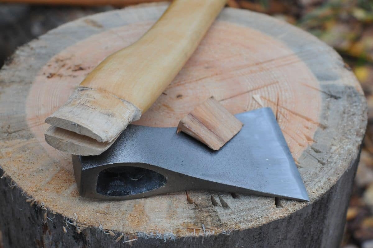 Болтающийся на топорище стальной топор – это инструмент с низким КПД (топор постоянно выскакивает с ручки), представляющий большую, и, поверьте, реальную опасность для здоровья (а иногда – и для жизни). Я расскажу, как правильно поменять топорище, крепко насадить на него топор. Мой способ позволит пользоваться топором без проблем долгие годы. Итак, для начала нам нужно выбрать топорище. Основные требования к топорищу таковы: оно должно быть сделано из твердых пород древесины (береза, ясень, бук), древесина топорища должна быть хорошо просушенной. Некоторые делают топорище сами, однако это излишняя трата времени – качественные, заводские топорища стоят недорого, в пределах 100-200 рублей. Что нам понадобиться, кроме топора и топорища: - ножовка по металлу. Подойдет и по дереву, однако на нужны узкие пропилы под пазы; - деревянный молоток (на крайний случай сойдет и металлический); - пять клиньев – их лучше сделать из более твердых, чем у топорища, пород дерева. Один клин долж