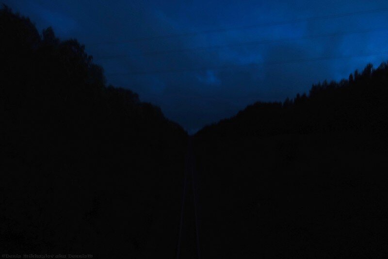 Стартовали мы не из Москвы, а из Наро-Фоминска, ровно в полночь. Киевское шоссе и ночью вполне оживлённое, к тому же, всю дорогу нас сопровождал сильный дождь. Ехать было тяжело, поэтому через два с половиной часа, уже в Калужской области, мы сделали остановку, что бы дать водителю отдохнуть. Нам же - пассажирам - спать не хотелось, поэтому мы решили прогуляться вдоль шоссе до путепровода над железнодорожной линией Смоленск - Сухиничи. До неё от места стоянки было около полутора километров, дождь прекратился. Мы бодренько - на улице было всего плюс три градуса - дошагали до путепровода, и увидели это: