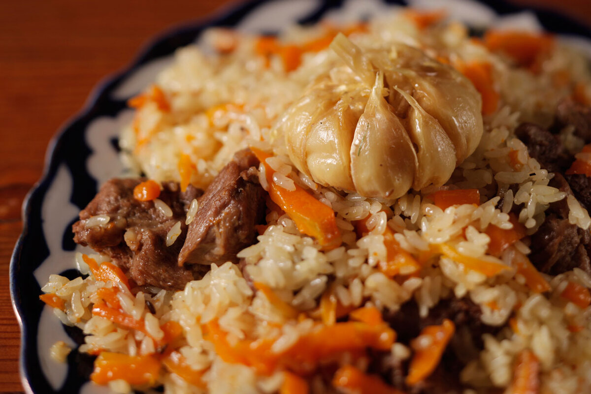Плов — падишах среди блюд в Средней Азии и на Ближнем Востоке. Рецептов плова столько же, сколько областей в этих странах. Благодаря нашему рецепту вам вполне по силам самостоятельно приготовить настоящий узбекский плов! Ингредиенты Инструкции Затем аккуратно засыпать и разровнять рис, влить кипяток слоем 1,5 см над поверхностью риса и варить на сильном огне до выкипания воды. После чего добавить изюм, осторожно перемешать рис с изюмом, не трогая нижнего слоя мяса с морковью, собрать его горкой, сделать в нем несколько отверстий до самого дна, залить в них по 2-3 ст. ложки кипятка, заровнять их, накрыть крышкой и оставить томиться на очень слабом огне 45-60 мин. Готовый плов перемешать, выложить на большое блюдо и украсить резаными помидорами и луком. Примечания для рецепта На последней стадии приготовления плова огонь должен быть - ну очень слабый! Можно не добавлять горох нут и изюм. См. на сайте...