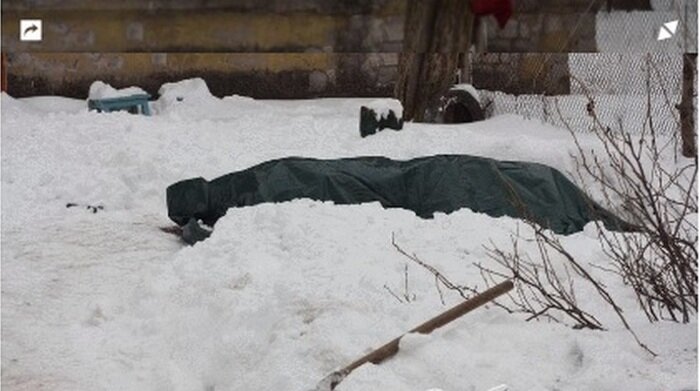 Портал «Событие» сообщил о том, что у родственников умершего в в Каменском человека банально не было денег на то, чтобы похоронить своего покойника на кладбище в областном центре, по этой причине они решили на какое-то время оставить тело во дворе дома. С 14 по 20 марта мертвец лежал прямо на улице завернутый в брезентовую ткань. Чтобы с покойным ничего не случилось, родственники по очереди дежурили возле него, а иногда даже убирали снег. Когда фотографии мертвеца появились во всех украинским медиа, родственникам пришлось убрать гроб подальше от посторонних глаз.А к тому же, напротив места где стоял гроб с не захороненным телом как раз находилась школа и ее учащиеся вынуждены были каждый день лицезреть печальное происходящее.https://www.5-tv.ru/news/191179/ Больше новостей на "Я с тобой. NEWS"